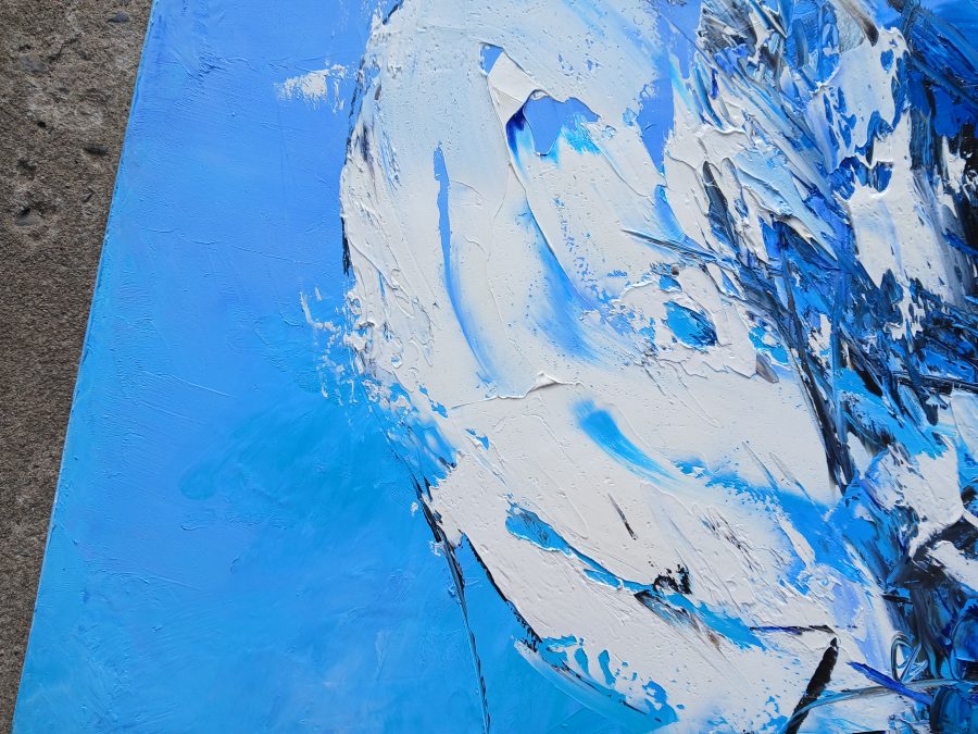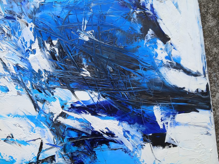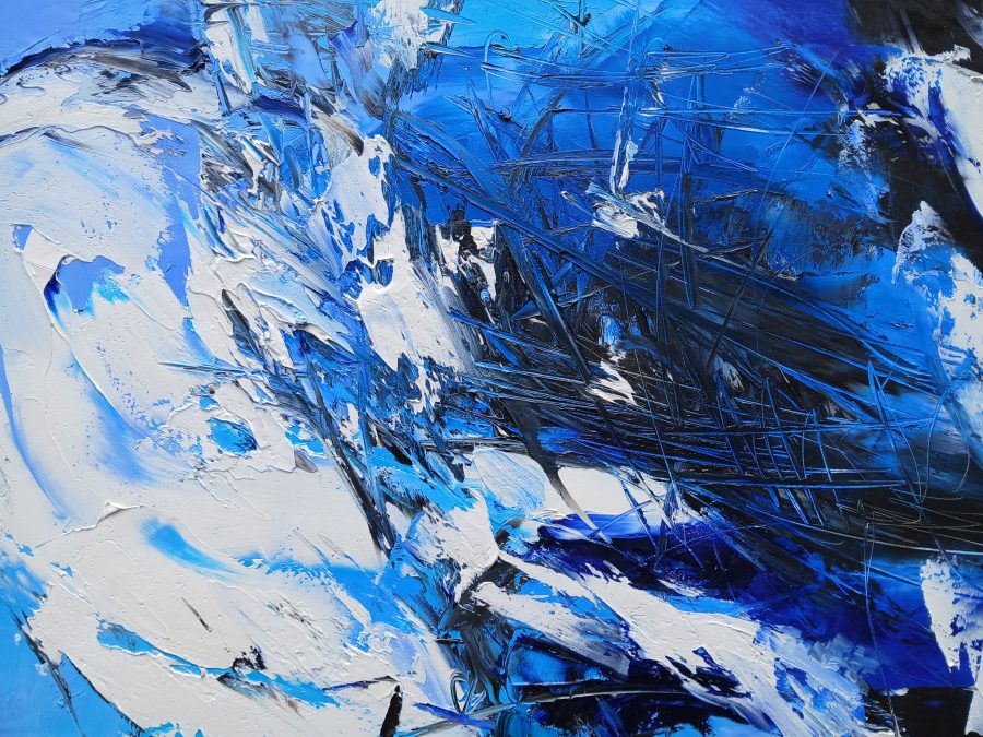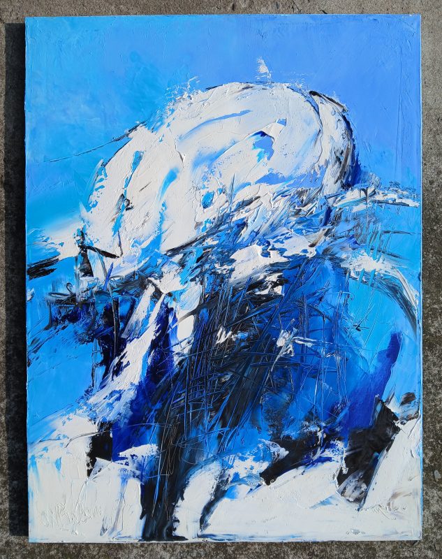 Astrazione di paesaggio invernale realizzato con i toni di bianco e blu , olio su tela, cm.60×80. Dipinto unico.