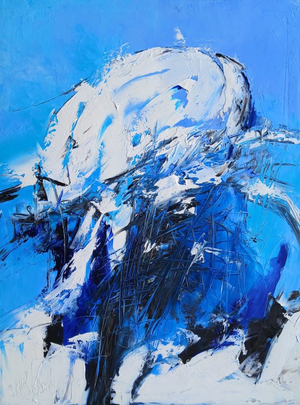Arbusti e neve in bianco e blu. Olio su tela.