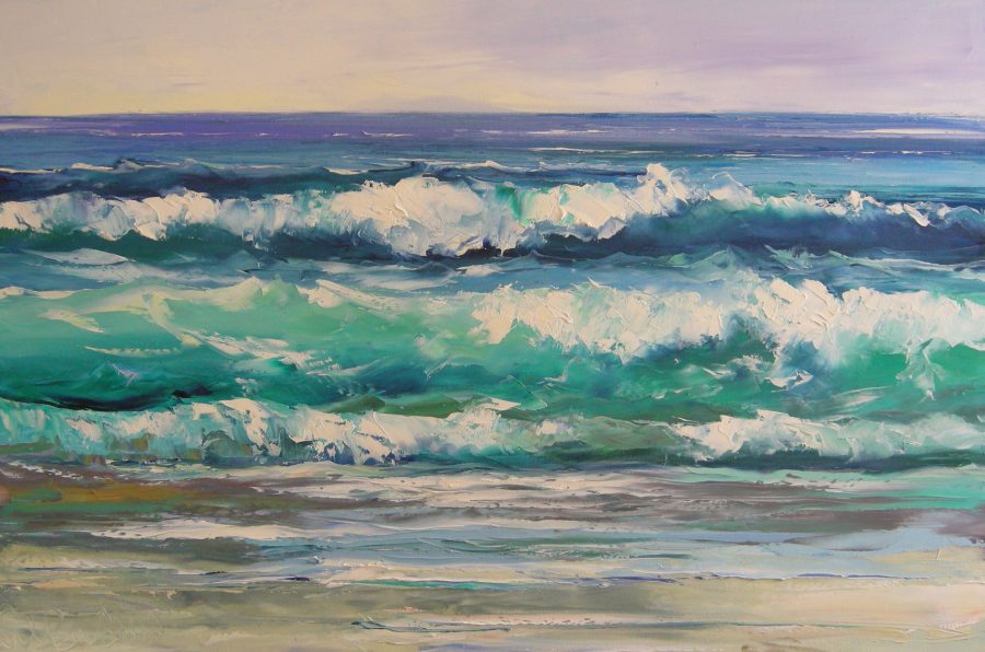 Marina classica, onde verde acqua; olio su tela, cm.60×80. Dipinto unico.