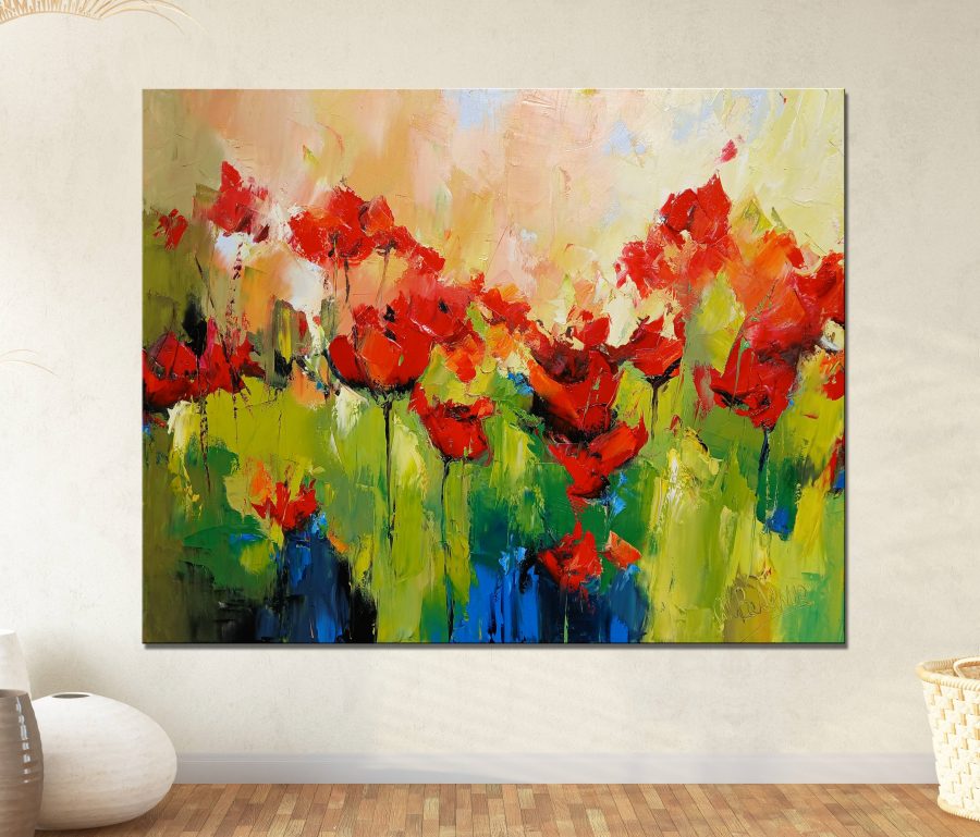 Grande paesaggio con papaveri; olio su tela, cm.80×100. Dipinto unico.